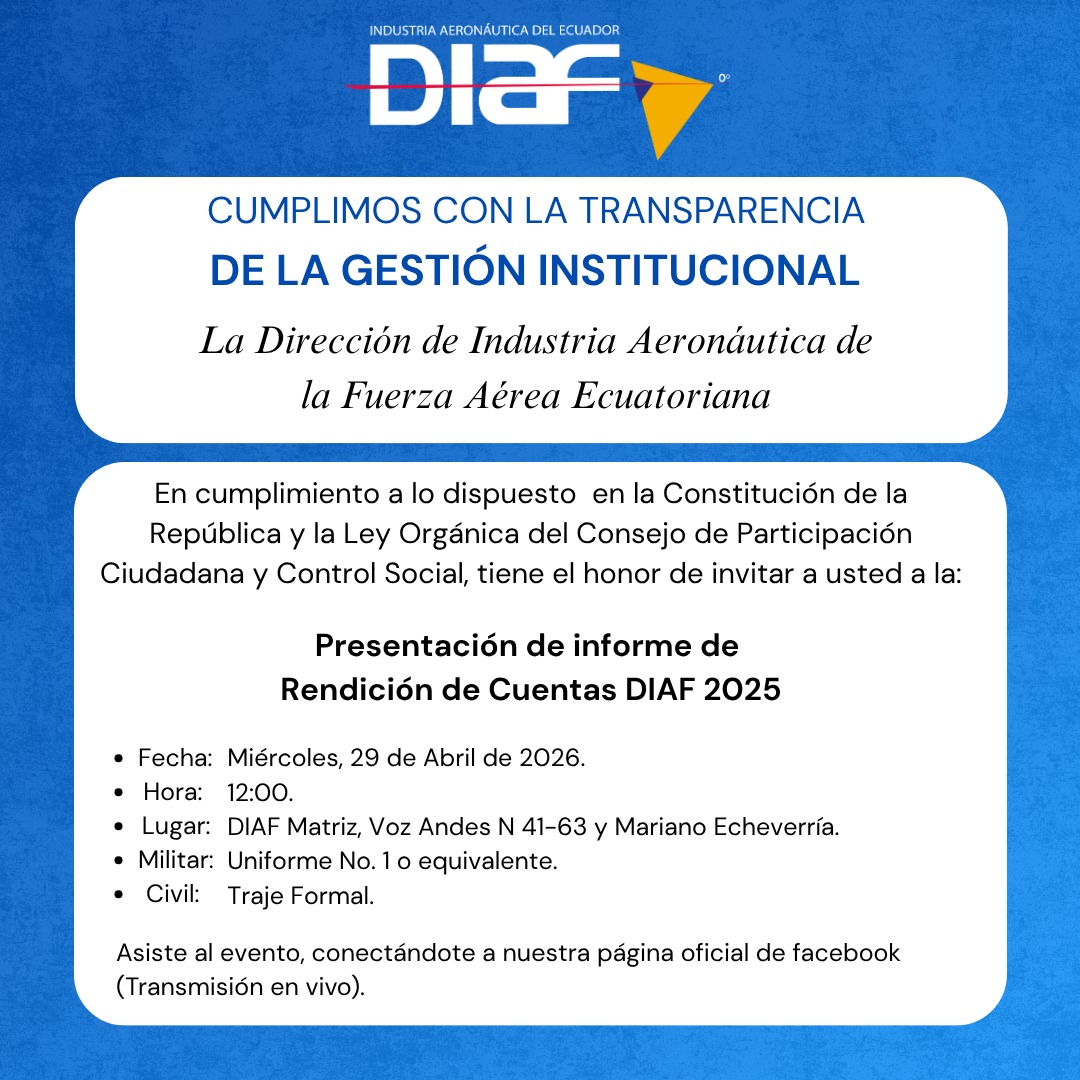 Organismo de más alto nivel en el Ecuador dedicado al desarrollo aeronáutico, mantenimiento, electrónica, aviónica, ingeniería e investigación aplicada a la producción de bienes y servicios aeronáuticos, construcción de elementos necesarios para la industria y provisión de partes y repuestos integrando la más alta calidad con tecnología de punta en todo servicio que brinda